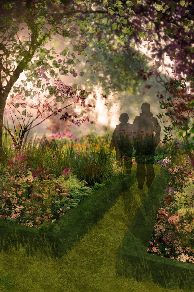 Les éléments plus hauts que nous façonnent un cocon. Quand le végétal se dé-densifie, c’est la clairière : l’espace est plus large mais nous sommes encore protégés, bien que nous puissions alors contempler la beauté du ciel à travers cette «fenêtre» végétale. Enfin, quand le couvert se raréfie ou diminue de hauteur, notre champ de vision, alors dégagé, nous laisse profiter du plein air.